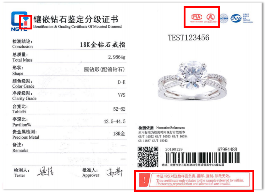 NGTC提醒您:买珠宝,要证书,认准NGTC!查询证书真伪,欢迎扫描证书上的二维码或登陆NGTC官网(www.ngtc.com.cn)、中国珠宝行业网(www.chinajeweler.com)!