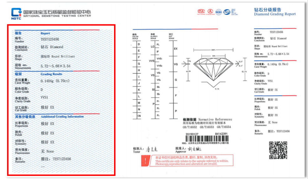 珠宝玉石分级证书封皮(上)及正文(下)抢先看